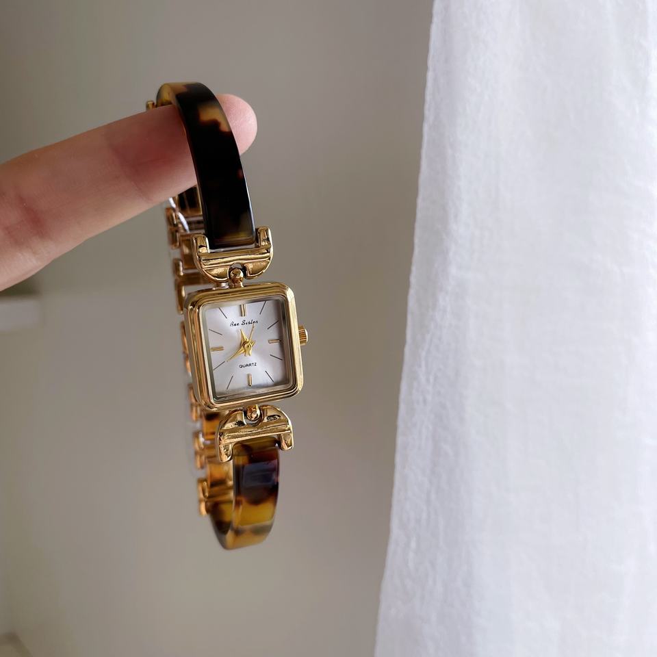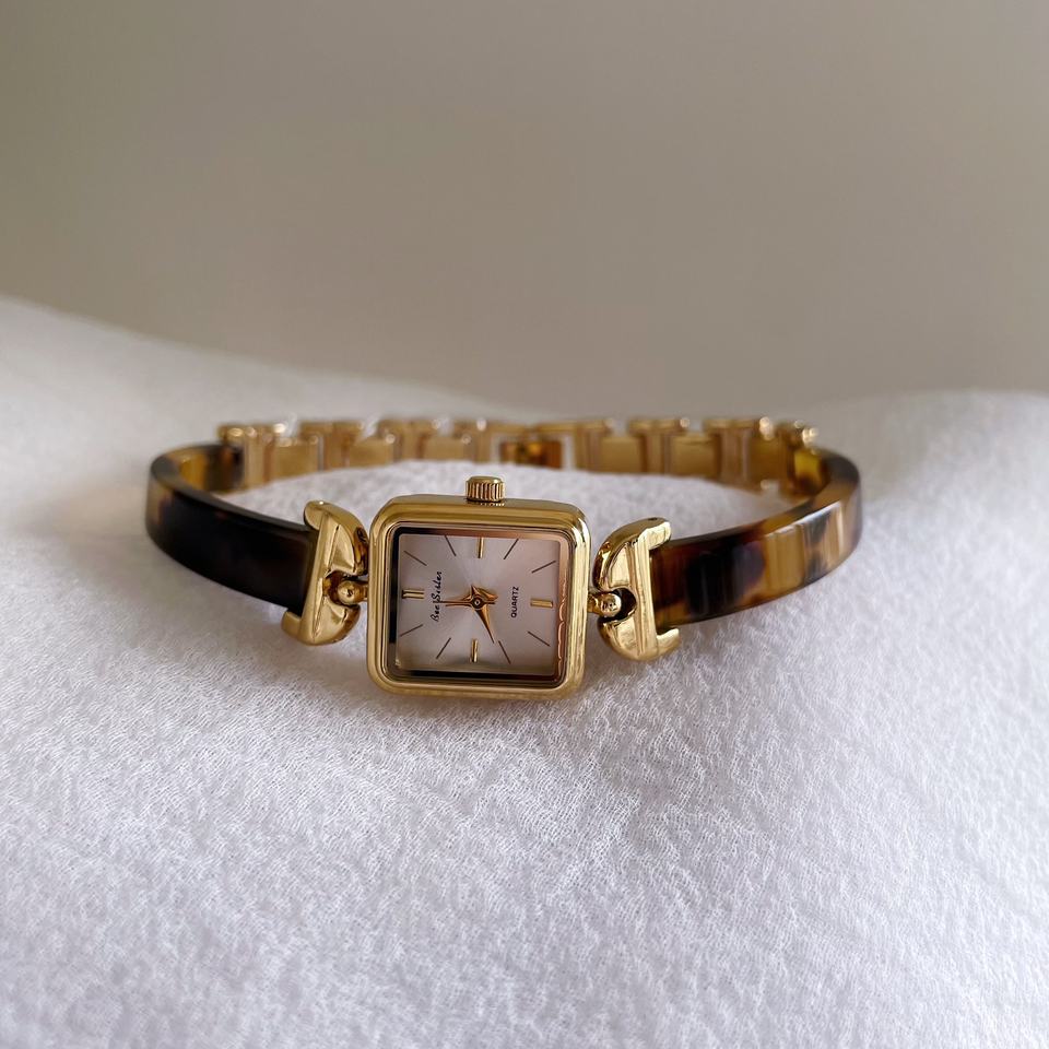 ⏰✨ Reloj de cuarzo para mujer | Diseño cuadrado ámbar 💎 joyería elegante y casual