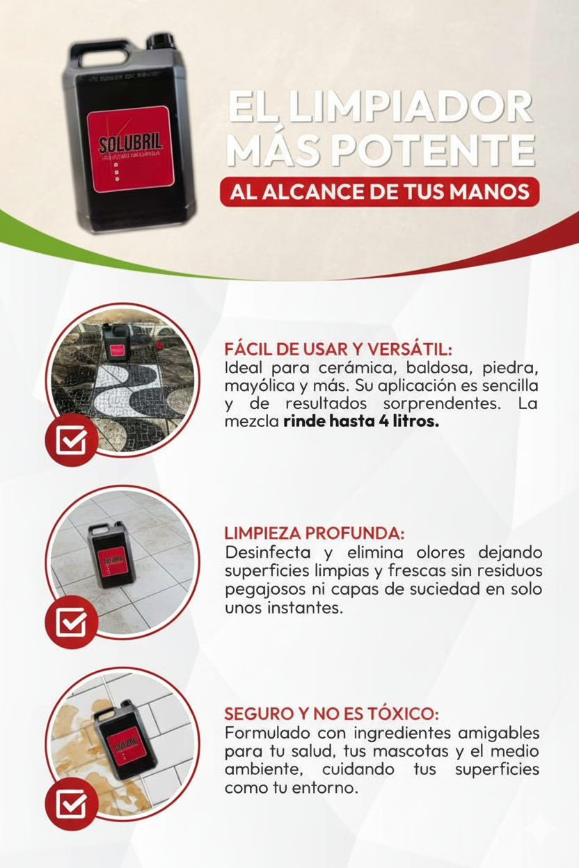 🟢Limpiador potente: eliminar la suciedad, las manchas y la grasa de tus pisos. 🟢Fácil de usar: se puede utilizar en diferentes superficies, como cerámica, baldosa, piedra , mayólica entre otros.